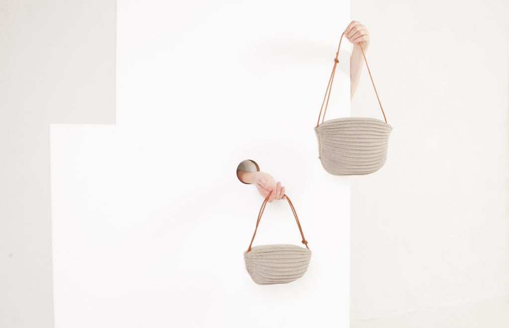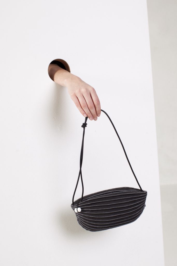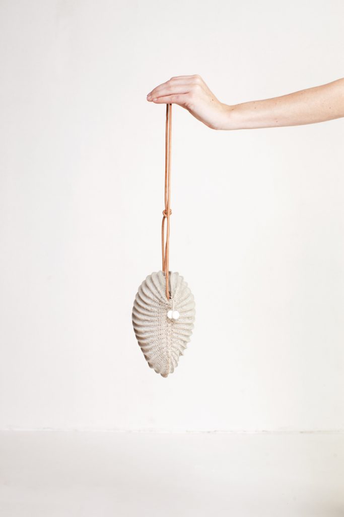 Inspired by the aesthetics of natural containers like pods, hulls and cocoons, our Chrysalis ladies’ bags are accessories of timeless beauty. The Chrysalis Bags are 3D-knitted. With this computer-driven technology, three-dimensional objects can be knitted in one piece, practically without additional stitching. This makes it possible to create complex organic shapes which look like they have grown naturally. The Chrysalis Bags were developed in cooperation with TextielLab Tilburg.