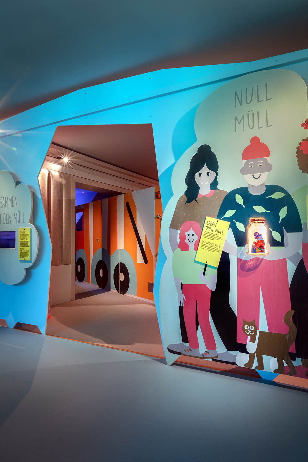 Delve into the world of garbage and waste processing in this interactive exhibition for children and families in Stuttgart! In order to convey the grubby topic in an entertaining way, we gave it a sympathetic face with the help of illustrations, revolving around six garbage monsters.