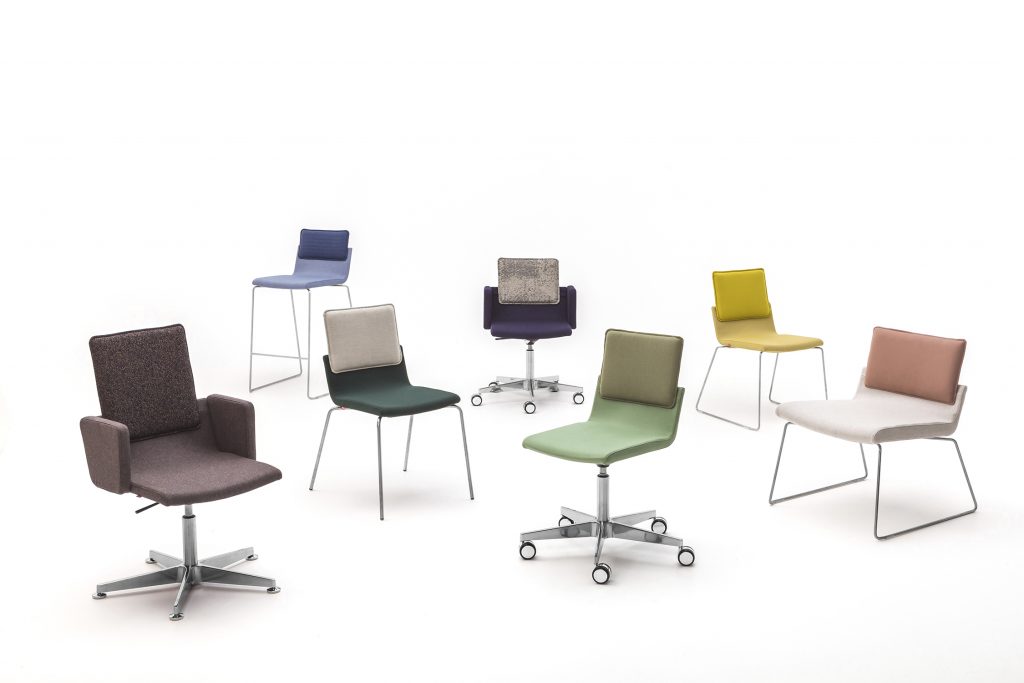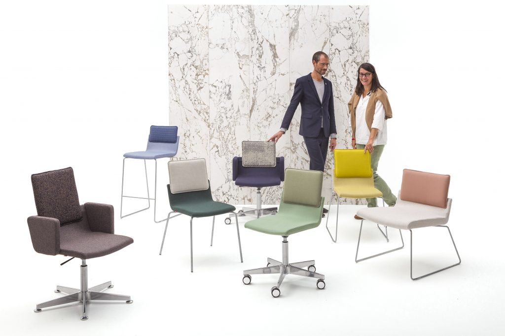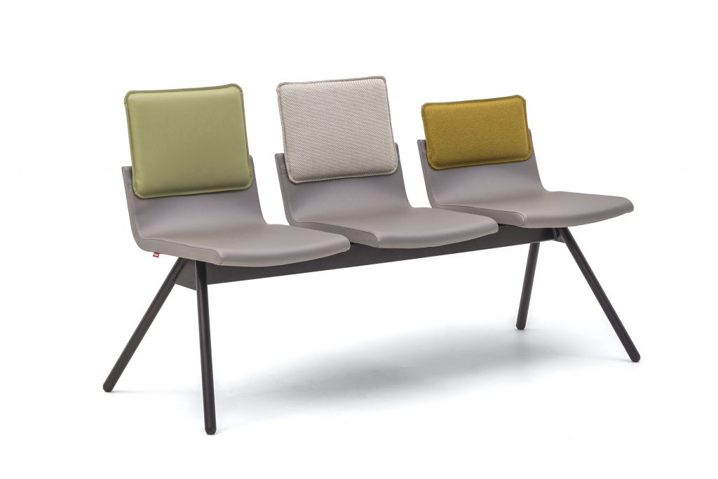Architects and office furniture professionals love the upholstery possibilities of our Triennial Chair, so Gispen asked us to turn the one-off model into a whole family. We added different backs and arm rests and created variations in width and height. We ended up with a really playful family, including a project chair, a low chair, a high chair and the bench Wait. While we were at it, we also improved its environmental impact to suit Gispens circular economy policy.
